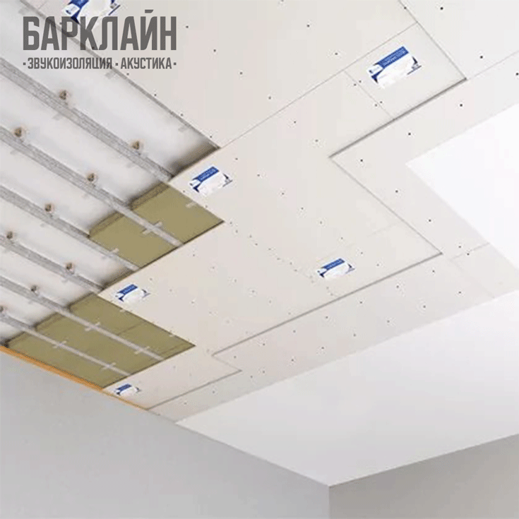 Монтаж каркасной системы «Барклайн Базовая» на потолок, (толщина 80 мм, ΔRw – 18 дБ, Rw - 72 дБ)