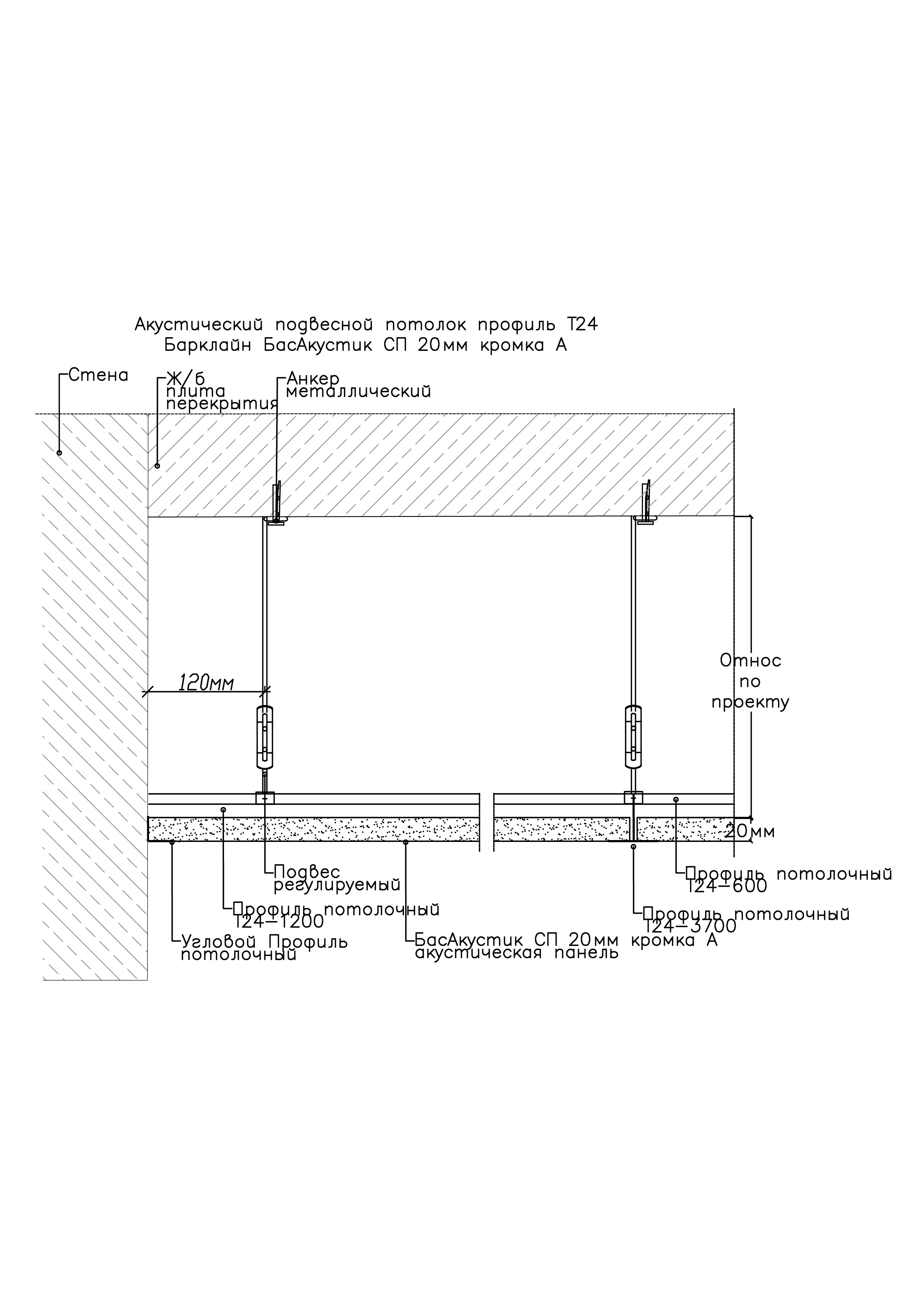 Панели устанавливаются свободно в решетку каркаса из потолочного профиля серии «Т». Система крепления каркас серии «Т» приобретается отдельно.