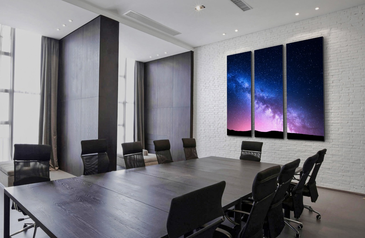 Скрывая за своим эстетичным внешним видом слой акустического материала, картина эффективно корректирует акустику помещения, делая его не только красивым, но и комфортным для восприятия звука. Идеально подходит для офисов, студий, общественных и культурных мест, домашних кинотеатров и переговорных, авторских кафе и ресторанов.