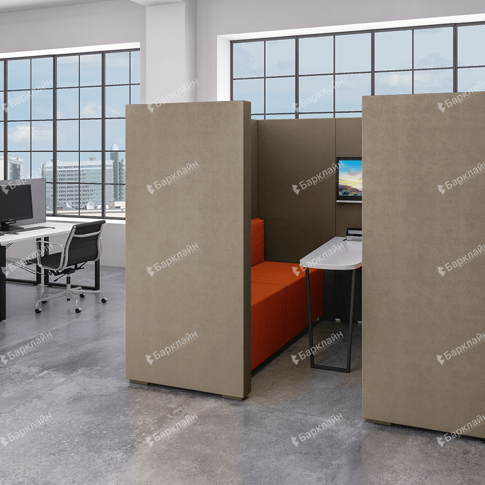 - Офисы и коворкинги – переговорные зоны в open space, приватные рабочие места для звонков и видеоконференций
