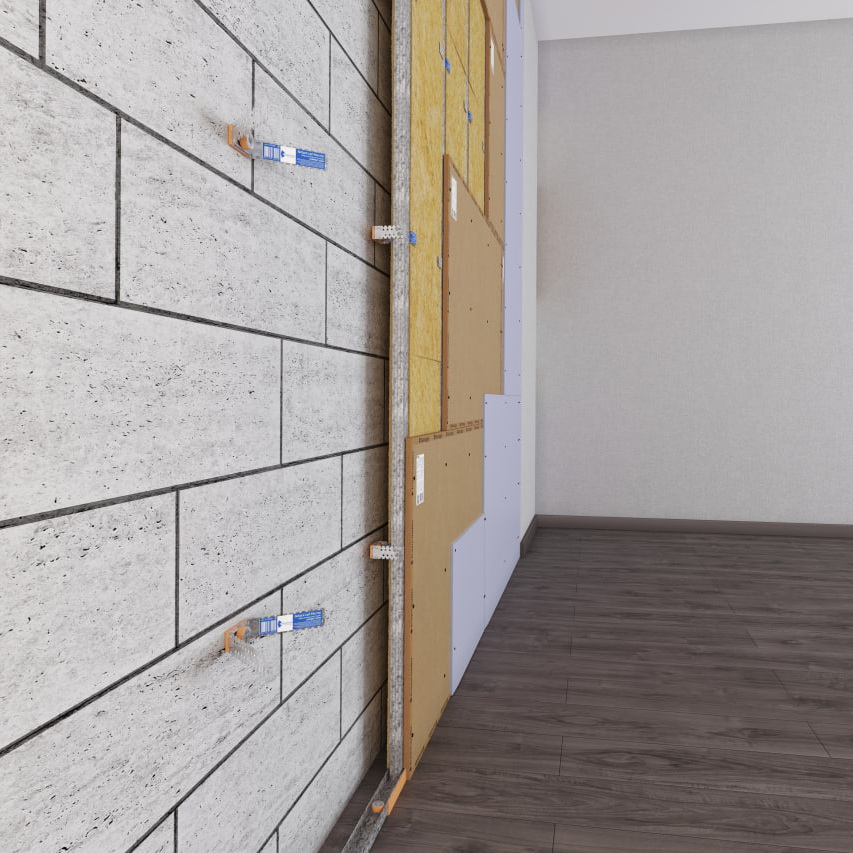 Самая доступная по цене каркасная звукоизоляция. Внутри каркаса прокладываем эл.кабели, трубы, каркас выравнивает основание.