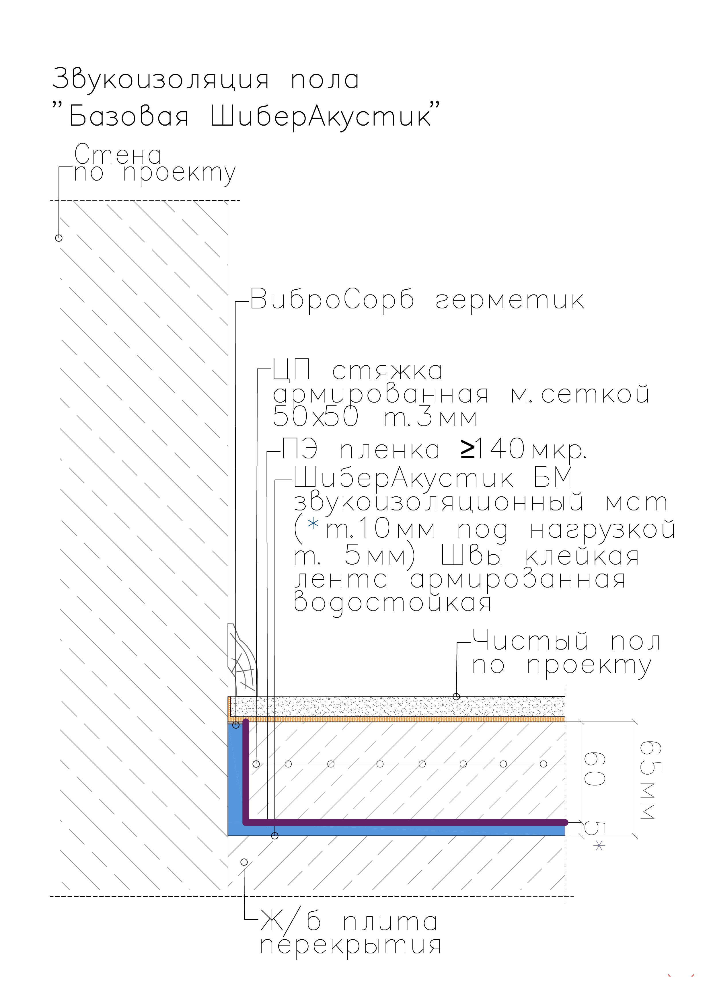 Самая распространенная система звукоизоляции под стяжку. Решает все задачи по звукоизоляции от стандартных шумов. работает в обе стороны.