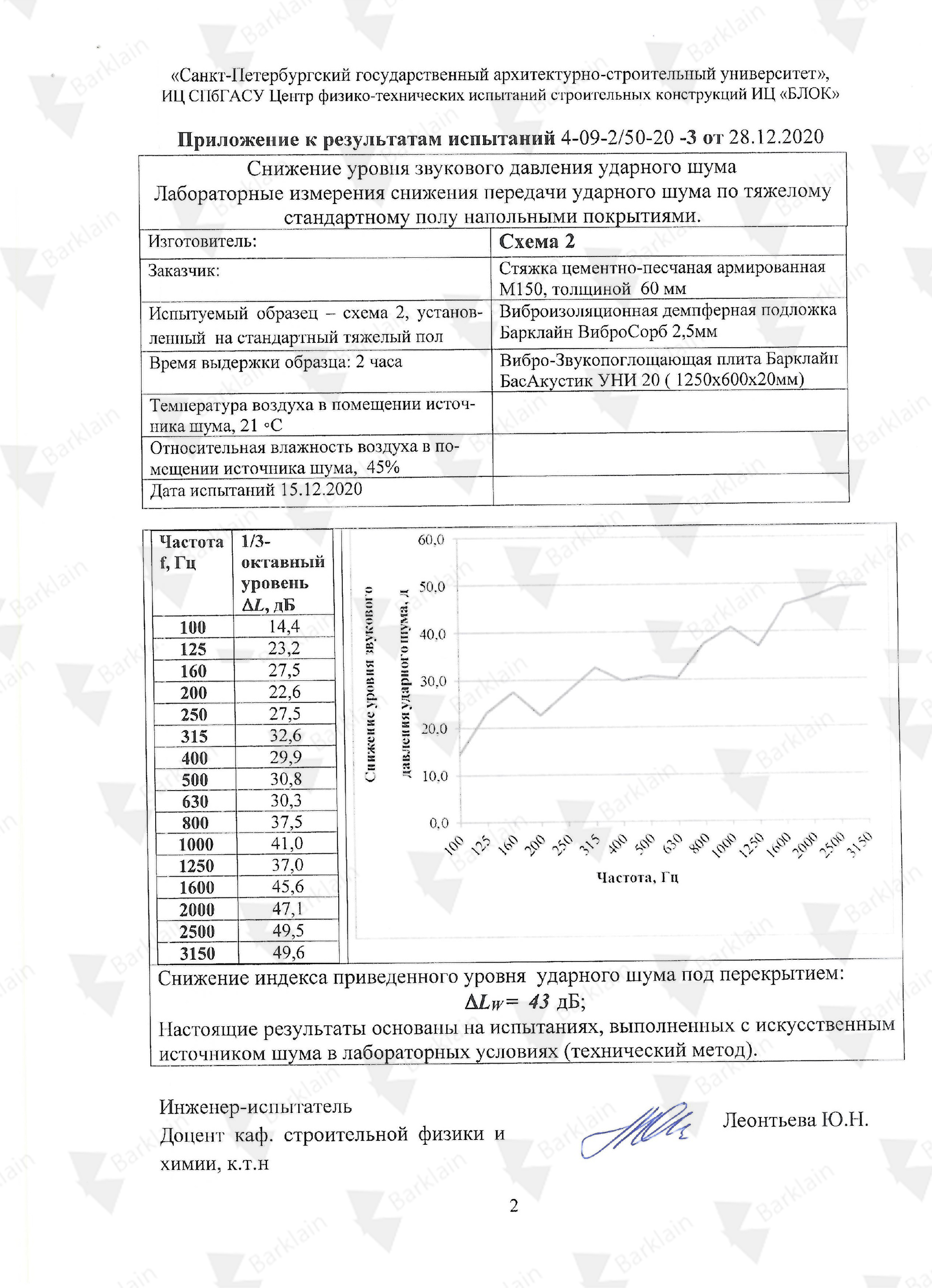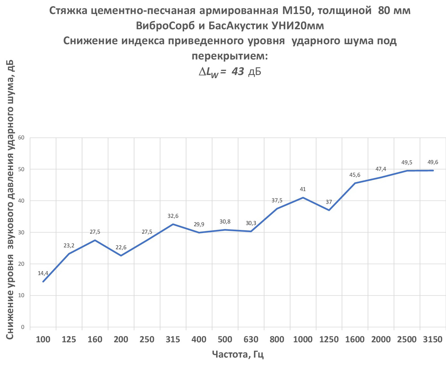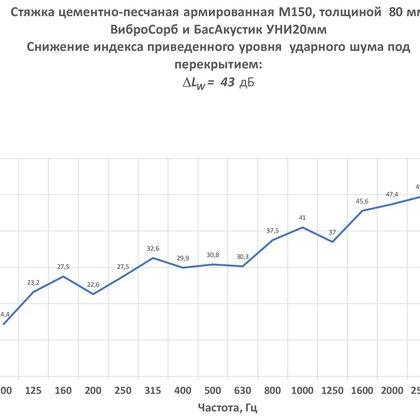 Звукоизоляция ударного шума , ∆Lnw 43 дБ