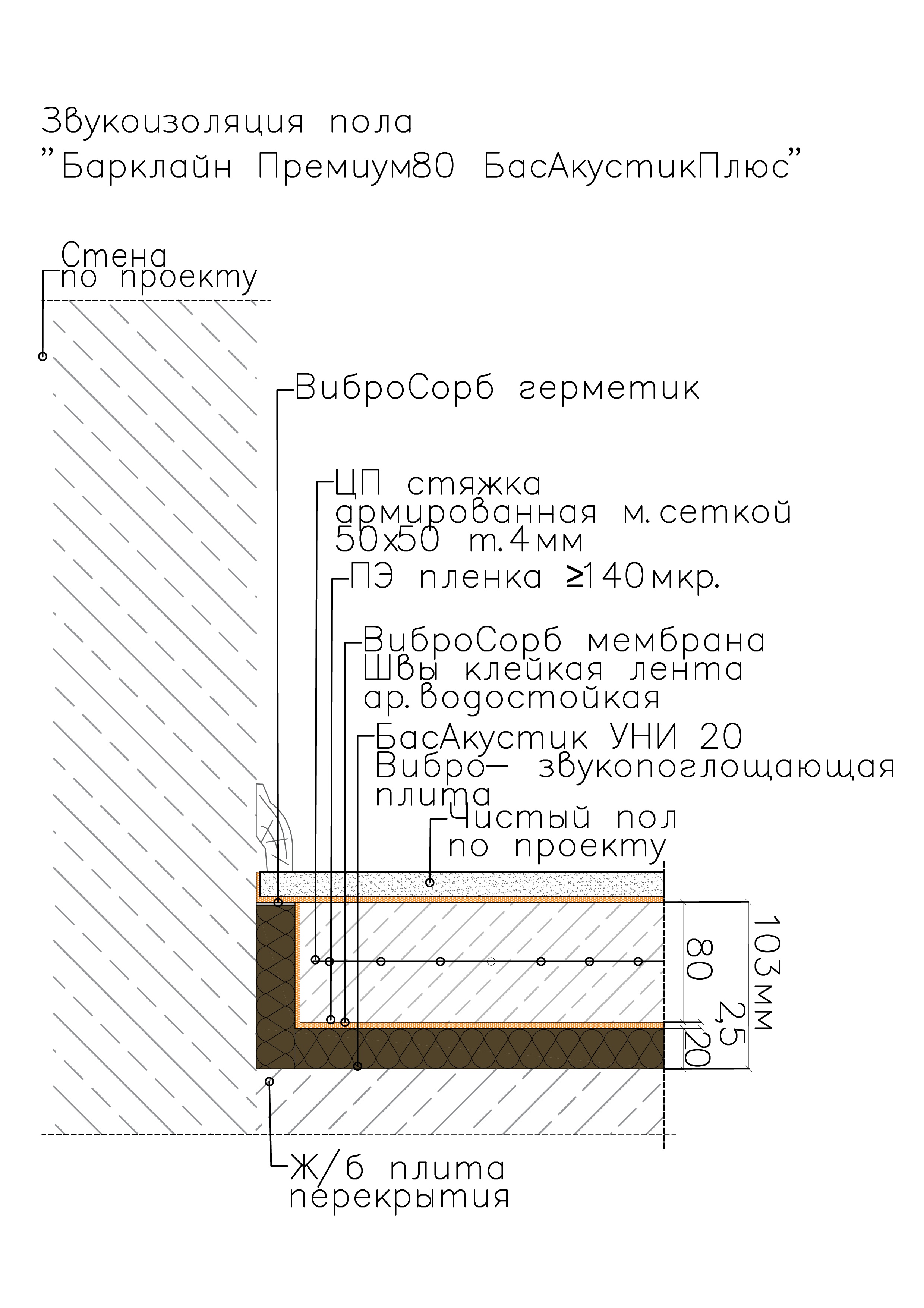 Самая эффективная система. Звукоизоляция стяжка 80 мм по звукоизоляционному слою БасАкустик УНИ20 и виброизоляционной мембраны-подложки ВиброСорб 2.5 мм . Финишное покрытие пола - все представленные на рынке материалы.